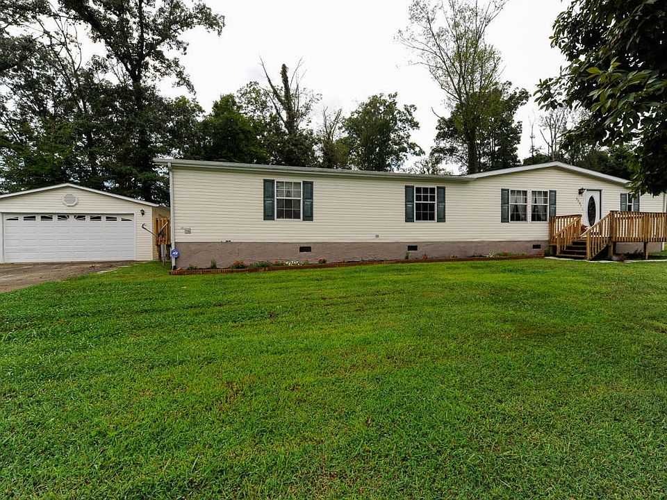 WHAT A LOT OF HOUSE FOR THE MONEY! FEATURES TO INCLUDE: DETACHED GARAGE (20 X 24), LIVING ROOM (CATHEDRAL CEILING), KITCHEN (W/ISLAND & ALL APPLIANCES STAY!), DEN (W/WOODBURNING FIREPLACE), SPLIT BR PLAN, MASTER BR W/ MASTER BATH (JETTED TUB, DOUBLE VANITIES & WALK IN SHOWER, ALMOST 2000 SQ. FT, DECKS, 2 GUEST BR, GUEST BATH & MUCH MORE! PROPERTY SITS ON 3/4 ACRE LOT AND IS ON A PERMANENT FOUNDATION!