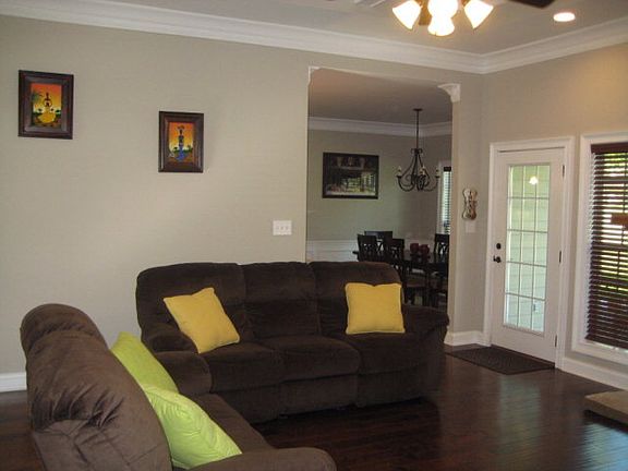This immaculate home has a large great room with gorgeous hardwood floors & fireplace that overlooks the covered back porch & 1 acre lot (one of the largest lots in SD) facing east so no afternoon sun. Great room is open to the kitchen & large breakfast area that also has wood floors.. The kitchen has granite counter tops,stainless appliances & beautiful dark wood cabinets. Lots of counter space,large breakfast counter height bar & walk in pantry. Split floor plan with master suite having two huge walk in closets, tray ceiling. Master bath has pretty tile shower & soaker tub with double vanities. There are 3 additional bedrooms on the other side that share a nice bath.Tile that looks like wood in all the wet areas. Wood blinds. This home has use of the community play ground & fishing right to the beautiful lake also used for kayaking and boating. Landscaped & fenced in back yard,