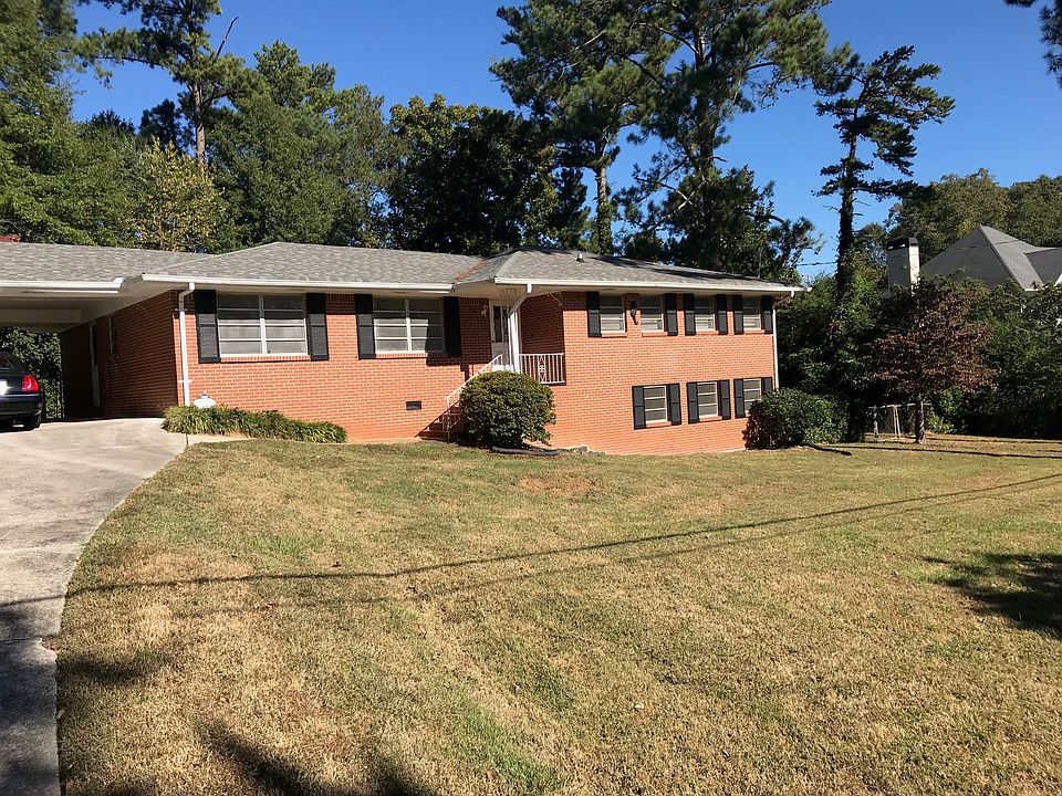 All brick ranch home with a screened in back porch on the Gwinnett county side. 3 bedrooms, 2 full baths, updated and modern kitchen with gas stove, refrigerator, dishwasher. New carpet and brand new double pane windows in the entire home. Covered parking with extra parking on the driveway. Laundry hook-up in the unfinished basement.