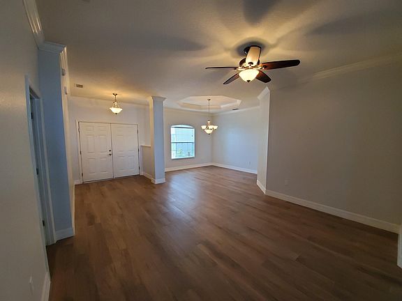 Waterfront property with lawn maintenance included! This beautifully maintained home was built in 2008 and offers 2,350 sq. ft of living space with 9'4" ceilings and NEW PAINT inside AND out (2019). As you enter the double-door front entry, you will immediately notice the new 8"x48" wood-plank porcelain tile flooring throughout the home along with new baseboards and crown molding. As you make your way through the formal living room you will enter the extra-large family room which opens directly to the large kitchen and breakfast nook with plenty of space for entertaining. Lots of gorgeous lake views from the oversized windows and 8' sliding glass doors, offering tons of natural light. The indoor laundry room is right off the kitchen and has extra shelving for additional storage. The master bedroom suite features a tray ceiling, oversized sliding glass doors, and a custom-built walk-in closet. The master bath has dual sinks, a large garden tub, and separate shower. The spare bath was also remodeled with a stunning Kohler soaker bathtub and beautiful natural stone wall tile. Other upgrades include: Radiant barrier, roof shingles, an 80gal solar hot water heater, insulation in the concrete blocks, rain gutters, 4ft extension on the 2-car garage, and fenced in. This family friendly home is perfect for outdoor activities and fun with friends and family. Enjoy beautiful sunsets in your covered lanai overlooking the lake. You can even enjoy the Sun N'Fun Fly-in Expo from your very own backyard! Min requirements include renter's insurance, 3x monthly rent income, and mid to high 600 credit score.