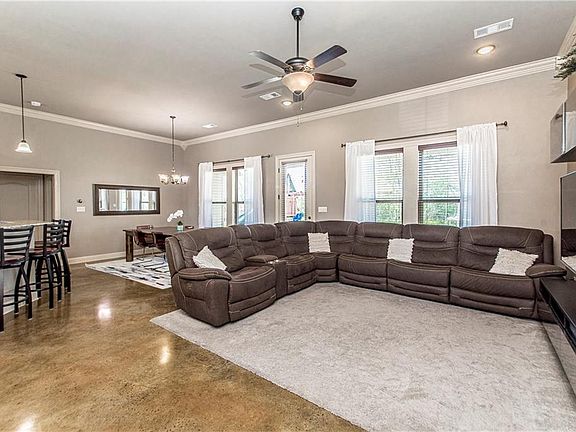 Beautifully kept 4 bedroom 2 bath on large lot in Deerfields Subdivision! Spacious open floor plan features stained concrete floors throughout! Fabulous Kitchen with granite counters, stainless appliances & huge high bar island. Tons of natural light with wall of windows overlooking rear yard. Split plan provides for added privacy for Primary suite which features tray ceiling, corner soaker tub, separate vanities, framed mirrors & large closet. Limited traffic on this Cul de sac street. Flood Zone X!