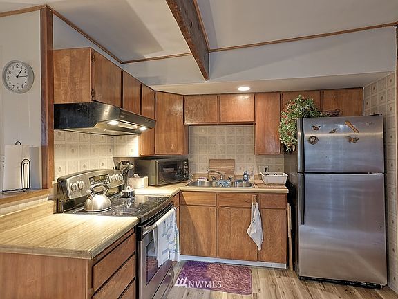 This beautiful level half acre property includes two homes - one is a very cute and well kept detached studio home with 565 square feet and its own approved septic and includes a propane fireplace, full kitchen and is nicely remodeled. The other is a 891 square foot rambler, which is livable but needs extensive repairs or removal and replacement. The lovely setting is very private and the homes take access from a short private road only a few blocks from Highway 9 and with great access to Arlington, I-5, and the Centennial Trail. There is a ton of potential here, just use your imagination, come and take a look. Will likely require cash or a very large down for financing.