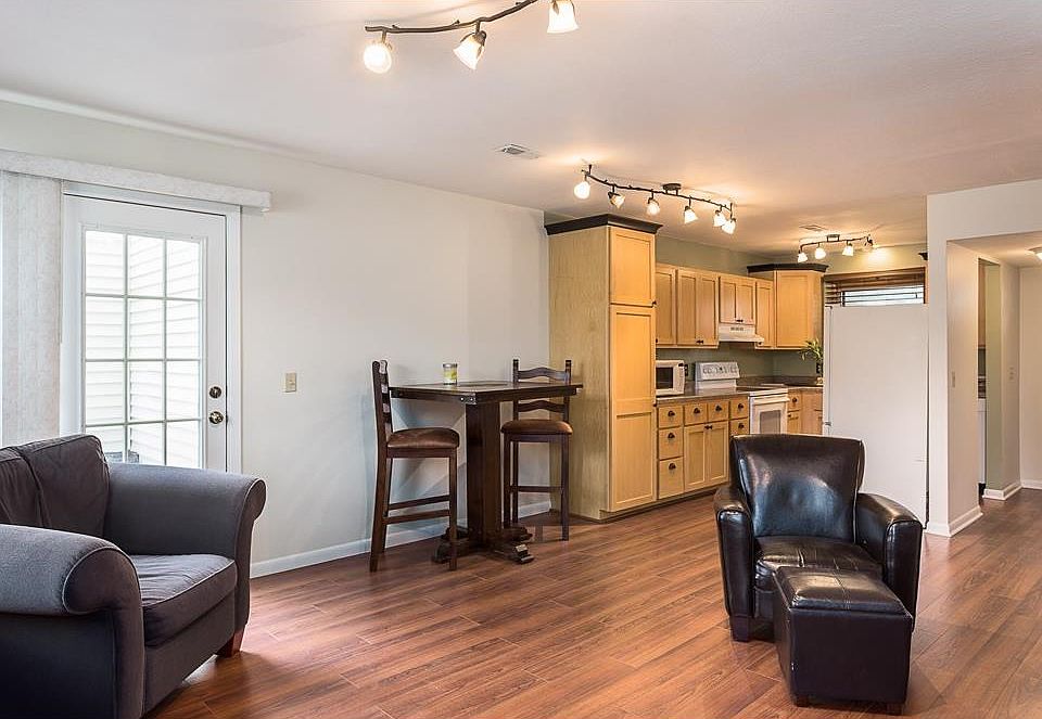 Great quiet location near bike trails, low association dues. A super clean 2 level townhome unlike any others in the development. Updates throughout the entire home. Remodeled kitchen is open to the living room and includes custom cabinetry,custom lighting, countertops, faucet, and attractive wood laminate flooring.2 bedrooms with ample closet space, newer carpet, and ceiling fans. Updated hall bath offers convenient location for the washer and dryer. Living room has wood burning fireplace and leads to a charming secluded deck. Main floor half bath has pedestal sink, new flooring, faucet, and light. Generously sized basement room leads to the attached heated garage and there's also a bonus storage closet. Additional guest parking space. All appliances included.