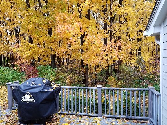 Welcome to a condo backing up to wooded ravine in gated comm where deer do roam! Bring your personal items & move right in to well maintained & updated 2 bdrm/2 ba handicap accessible ranch hm. Entertain in large living room/fireplace, dining rm, extended kitchen/breakfast nook or deck all to backdrop of woods. Check out the "multi-purpose" room currently an office for two-potential fam rm, dining rm, workout rm, or even guest rm. Lots of closets/ storage. Updates inc HVAC, windows, doors, deck, flooring, appliances, electrical panel, lights, garage heater, sump pump. Master bath has been totally rebuilt - handicap accessibility. All appliances inc. Water/sewer/trash pickup/snow removal/lawn care, exterior maintenance inc in Assoc fees.
