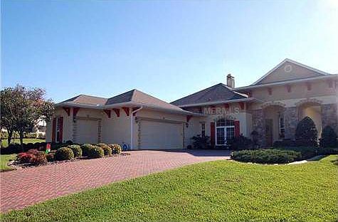 With magnificent sunsets and peaceful setting this 2 or 3 bedroom home is situated on a hill and located on a cul-de-sac in beautiful Harbor Hills Country Club. Surrounded by curbed gardens, pine trees and a bird's eye view of Lake Griffin, this home includes a floor to ceiling (12 ft!) custom stone, wood burning fireplace with raised hearth. Hunter Douglas wooden blinds and Plantation Shutters, Anderson Hardwood wide plank distressed flooring. Custom wood cabinetry throughout. Formal dining room and living/great room include tray ceilings. Den includes French Doors and a Mini office in the guest wing. Home has a huge 636 sf garage for two cars plus a golf cart garage and mounted cabinet storage. Year- round fully enclosed Lanai with newer (2018) ac/heat and tinted window that look out on a private back yard with a wooded view. Completely updated and remodeled kitchen with Cambria Quartz countertops and backsplash, top of the line built-in stainless appliances, custom built-in pantry and ceramic wood-look wide plank flooring. Master suite has a separate entrance onto the lanai and a large custom closet with custom built-in drawers and double rows for hanging clothes. Master bath has double sinks, separate WC, garden tub and separate Roman shower. New ac/hot water in 2019.