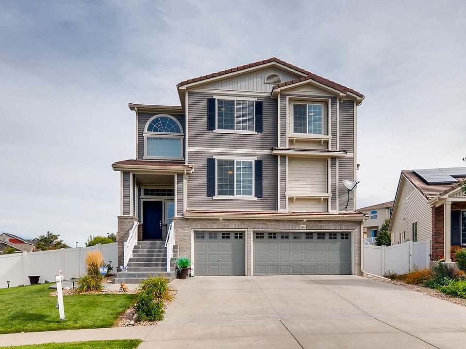 Impeccable Denver Three Story With Walk-Out Lower Level Across From Greenbelt!! Corner Lot / South Facing / Tile Floors / 2 Gas Fireplaces / Surround Sound / Walk-In Closets / Guest Suite / Slab Granite Counter Tops / Double Oven / Gas Stove / Kitchen Island / 42" Cabinets / Wood Laminate Floors / Tile Backsplash / Pendant Lights / Pedestal Sink / Overlook Staircase / Loft / Recessed Lights / Ceiling Fans / 5 Piece Master Bathroom / Soaking Tub / Block Glass / Vinyl Siding / Sprinkler System / Dual Furnace & Central Air Conditioning / 6 Panel Doors / Tray Ceilings / Breakfast Bar / 601 Sq. Ft. 3 Car Garage / Covered Front Porch / Dual Patio Doors / Fenced Yard / 8,546 Sq. Ft. Lot / Stamped Concrete Patio / Dual Laundry Rooms / Close To Park!! Mountain Views!! Location!! Location!! Location!!