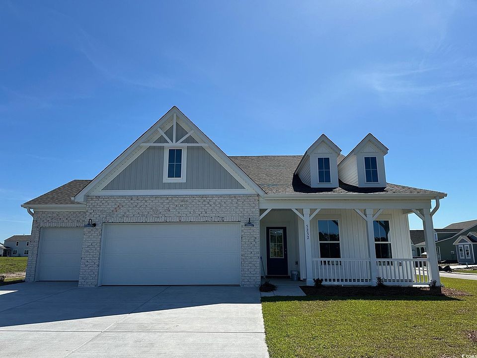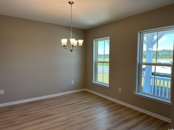 The Hickory with the optional upstairs and a 3-car garage. 4 Bedrooms, 3 full baths, a formal dining room, kitchen, great room with an extension, and covered porch. Upgrades galore: Brushed nickel Moen plumbing fixtures, Simply White quartz kitchen and butler's pantry counter tops, Pendant Lights over the kitchen Island, 5 under cabinet lights, a cast iron white Apron Kohler sink in the oversized kitchen Island, Progress Lighting ceiling fans, Hi-boy toilets, Sherwin Williams white ceiling paint and Agreeable Gray wall paint, attic storage over the garage, a utility sink in the garage, No carpet on the first floor, easy maintenance REV Wood laminate flooring by Mohawk throughout the downstairs, a beautiful primary bedroom suite with a tray ceiling and a walk in tile shower with a rain shower head, wall shower head, shampoo ledge, and dryoff bench. Upstairs features a huge loft and a bedroom and full bath. Daltile in all baths and the laundry room. 100% Energy Star Certified and EPA Indoor AirPlus Qualified with the complete Tyvek house wrap system, spray foam insulation, and Aeroseal/Aerobarrier which means improved energy efficiency and indoor air quality to give you a healthier, and more comfortable home with less pests, less moisture, less air loss, and a lower utility cost. Amenities include a premier location (2 miles to the shopping and dining venues in Carolina Forest, 6 miles to the beach, 7 miles to Market Common, and minutes to Highway 31), a community pool and clubhouse with a catering kitchen, gathering hall, and exercise room.