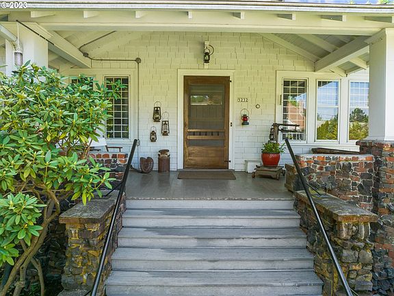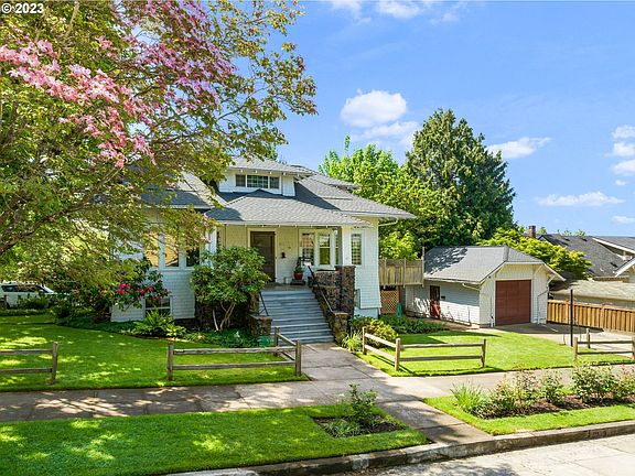 Mount Tabor Treasure! Stunning Craftsman on a corner lot! Original beamed ceilings, unpainted woodwork, windows, wainscotting, built ins and hardwood floors! Clinker brick fireplace, window seat, and custom folding french doors in living room. Formal dining room with leaded glass built ins and private side deck. The bright kitchen features an antique 1917 gas stove, tons of cabinet space, and an eating area. Two main floor bedrooms w/hardwood floors, built ins; bathroom with clawfoot tub. Gorgeous elevated front porch! Remodeled upper floor w/skylights, bath w/clawfoot tub, carpet, kitchenette with gas stove & marmoleum. Potential for separate living space/guest quarters/Primary suite. Daylight basement features fourth bedroom; large family room w/finished concrete floor; utility room with laundry & sink; & steam punk bathroom. (Lower level has exterior entry to the back driveway.) 50 year roof with transferrable warranty! Gas heat. Two detached garages; second garage accessed via back driveway off of 53rd. Large corner lot with garden, trees, raised beds. Blocks from Mount Tabor park, Hawthorne shops and restaurants, in the quiet center of gorgeous historic neighborhood. One of a kind, remarkable home, first time on market in 48 years!