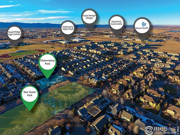 Introducing one of the very best locations in Observatory Village, with Star Gazer Park right outside your front door. Enjoy coffee on the front porch while looking out over the open space and listening to birds in the morning. Walk a very short distance across the park to the Observatory pool area in the summer, or continue on a few more blocks and arrive at the premier park in the city, Twin Silo Park, with large natural areas, trails, creeks & bridges, dog park, world class play area for kids, and pickleball courts. This is a former model home with 4 bedrooms + main floor office, 3.5 bathrooms, high ceilings, beautiful wood floors, granite countertops, stainless steel appliances, functional kitchen layout with pantry & separate laundry area, upgraded LED lighting, custom wood shutters and built-ins, and a low-maintenance yard with stone patio. Many of the best restaurants, coffee shops, and shopping options in Fort Collins are less than a mile away from this home!