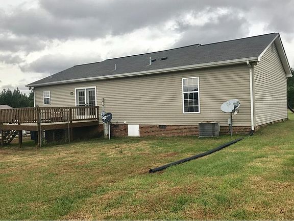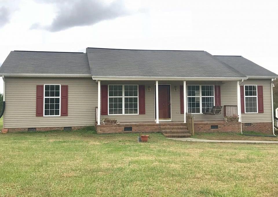 Modular one level home in NW Alamance County features 2 acre lot, covered front porch, open LR/Kitchen/Dining area. Breakfast Bar at kitchen and Nook area. Gas wall heater in Dining area.Rear Deck overlooking bkyd area. Detached carport. Storage bldg. remains. Fruit & pecan trees along the property.
