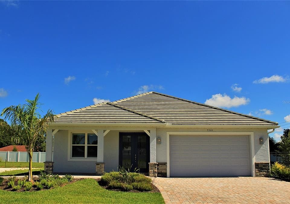 Under Construction. This 3 bedroom, 2 bathroom salt water pool and hot tub home is located in a new sub-division, Sand Hill Cove located just north of Clark Rd off Honore Ave. As soon as you enter the double 8 foot doors the large entrance draws you in. The kitchen features all wood 42 inch cabinets, granite counters, large island, back splash and stainless steel appliances. The laundry room is off the kitchen with addition cabinets, granite counter tops and a stainless steel laundry sink. The living area and master bedroom opens to the large screened in spacious lanai that looks onto upgraded pool and spa. Double tray ceiling in the living area with crown molding, and ceiling fan. Single tray with crown molding and ceiling fan in the master bedroom. The master bathroom has double sinks with granite counter tops and a large shower. Both master shower and guest tub have porcelain tile that extends to the ceiling. Quality construction of this home includes impact windows, front door and garage doors. This community has no CDD fees and a low HOA. Property is located in a new subdivison with no current tax assessment or value provided. Contact local tax collector's office for general questions and estimations. Pictures are of a previously built home.