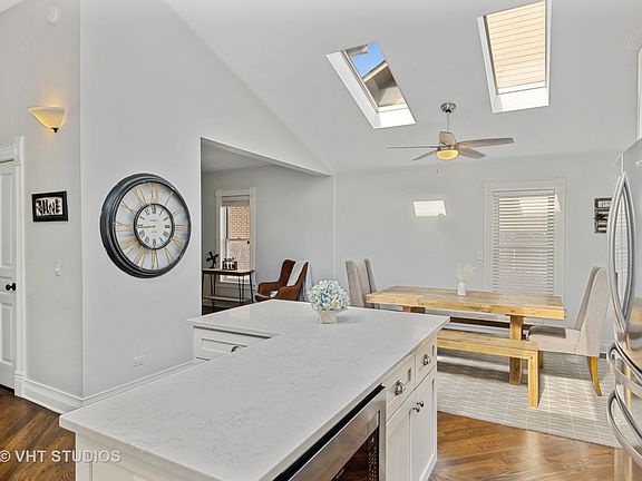 A short walk to Downtown Downers Grove, this Randall Park SHOWSTOPPER will instantly win you over! The perfect combination of timeless charm and modern renovations, this home comes complete with 3 generously sized bedrooms, 3 FULL bathrooms, a picture perfect Farmhouse Style front porch and a NEW 2 car garage! Completely remodeled in 2017, the sun drenched kitchen opens to a very spacious dining area and boasts skylights, a large island with quartz counter tops, white soft close cabinetry, volume ceilings, a gorgeous subway tile backsplash, newer stainless steel appliances and hardwood floors that extend throughout the entire house. The coziest of living rooms resides here with a fireplace and an additional slider that leads to your wrap around deck! Have I mentioned that this home has a first floor bedroom perfectly located for an office, guest bedroom, in-law arrangement or teen bedroom? The extremely spacious Primary Suite will check all of your boxes, boasting a new custom closet, spa bath with a jet tub, separate shower with full body sprayers, plenty of natural light and hardwood floors. The 2nd bedroom has its own full bathroom and is located just down the hall from the 2nd floor laundry with a newer washer and dryer and a gorgeous, bright loft area! There are so many places to enjoy nature at this home, from the perfect porch to the wrap-around deck, overlooking the professionally landscaped yard!! Located one block from highly rated Whittier Elementary and a quick drive to Downers North High School, one of the best parts of being in this family-oriented neighborhood is the annual traditions for adults and children to enjoy. Everyone loves the close proximity to Downtown, Metra, almost a dozen parks, farmers market, ample restaurants, cafes, boutiques and entertainment. A roughly 35 minute drive and 25 minute Metra ride to Chicago makes this home perfect for city commuters! Recent updates include: 2017- Roof, windows, trim, kitchen renovation/ 2019- washer/dryer, garage, privacy fence, custom blinds 2020- custom closet, professional landscaping, new fans and fixtures.