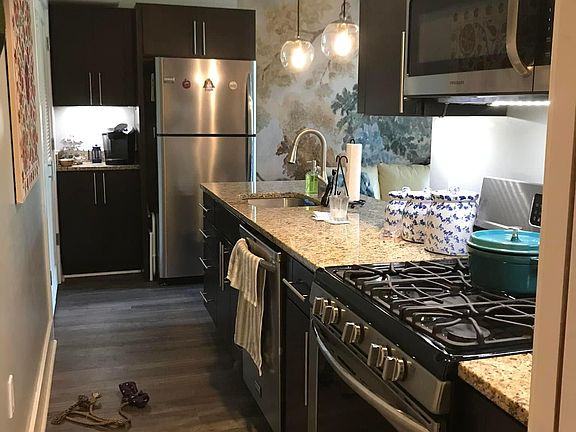 Located in Chevy Chase DC, this light-filled, exquisitely furnished one bedroom penthouse condo is available to rent September 1, 2022 to August 31, 2023 (with no option to extend the lease). Don't let the Connecticut Avenue address fool you -- the unit is situated on the backside of a boutique building and faces a quiet neighborhood street, while fabulous restaurants and shopping are all a short walk away. The combo living/dining room features 22' high ceilings, and sliding doors lead to a private balcony furnished with white wicker chairs and LED string lights. A spiral staircase takes you to a large loft with built-ins and a standing desk for those who want or need to work from home. The kitchen features granite countertops, new stainless steel appliances, custom light fixtures, and a washer/dryer. The bedroom has a queen-sized bed, several windows with custom shades, ensuite bathroom, a full closet, plus an additional wardrobe for extra clothing storage. Gas and water utilities are included in the rent; electric and internet utilities are not included in the rent. No smokers. No pets. Lease is offered for one year with no option to extend. Street parking is ample with limited first-come, first-served private parking in a lot behind the building.