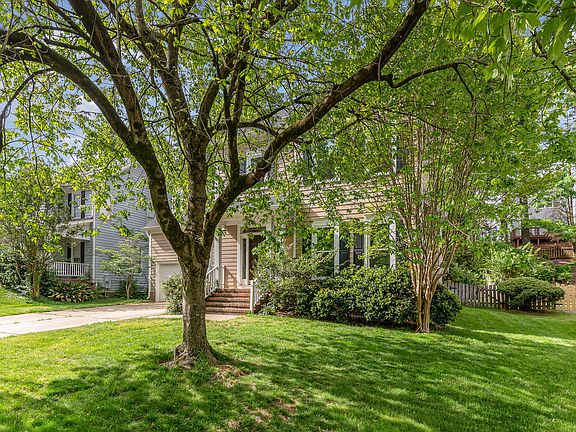 Welcome home to Covington Bend, the quintessential neighborhood gem of North Raleigh's famed Harrington Grove Community. This neighborhood is sought-after as one of the area's more robust lifestyle communities, rich in both amenity and neighborly affection. This magnificent residence was designed and built by the illustrious home builder, McNeill (formerly Saussy) Burbank - known for superior quality, timeless style, and exceptional durability. Numerous updates! Notable features of this charming abode include smooth, soaring 9-foot ceilings throughout, gleaming oak hardwood floors on the main level, and traditional millwork in formal areas. Unwind on a cold winter's night next to the warmth of a premium gas log fireplace in the family room. The primary bedroom suite showcases a vaulted ceiling with a walk-in shower, separate garden tub, and cavernous closet. Three additional bedrooms with a shared hall bath - all on the second level - offer exceptional versatility! Improved over the years to boast a new, terraced deck, new roof covering, updated water heater, and NEW WINDOWS installed 4/15. Fresh paint on main level! You do not want to miss this incredible opportunity to own a truly remarkable property that is essentially turn-key and ready for new owners. Welcome home!