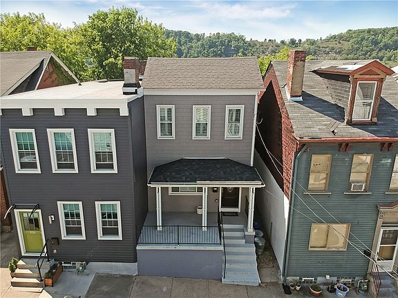Welcome to this 2-story, 2 bedroom, 1.5 bath home located in the heart of Lawrenceville! Striking exterior coupled with the chic elements of the interior. The covered front porch greets you and leads to the light and bright living room with corner gas fireplace. Neutral tones throughout. Nicely sized dining room is open to the kitchen with an abundance of recessed lighting. Shaker style cabinetry, stainless appliances, granite counters, glass tile backsplash, center island with pendant lighting plus pantry. Slider to the rear deck with steps to the large patio area expands the entertaining area with wooden privacy fence and wooded rear view. Two upstairs bedrooms each with ample closet space and full bath with white subway tiled tub/shower combination, contrasting listello accent and contemporary sink/vanity. Newer HVAC system (5 years). Within walking distance to dining + shopping. Appx 10 minutes to the Pgh Zoo and Aquarium. 15 minutes to the Strip District and Downtown Pittsburgh.