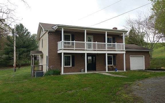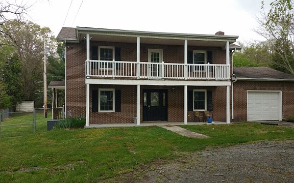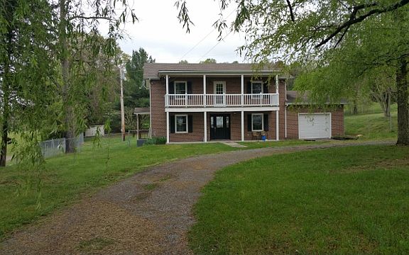 #3446 - 5233 Hopewell Rd, Tazewell, TN - This 2-story home has 3 bedrooms and 3 full bathrooms; living room and family room with wood stove; eat-in kitchen with dining area; laundry area; 2 car attached garage; level yard; 2 storage buildings; upstairs balcony; front porch across front of home; side porch; good well water; circle driveway; double pane double tilt windows; hardwood and carpet floors; range and dishwasher and wood stove stay with home; "Craft Maid" kitchen cabinets cost $7,000; security system; heat pump; approx. 1 acre; fenced back yard; move in ready; possession at closing; $129,900;