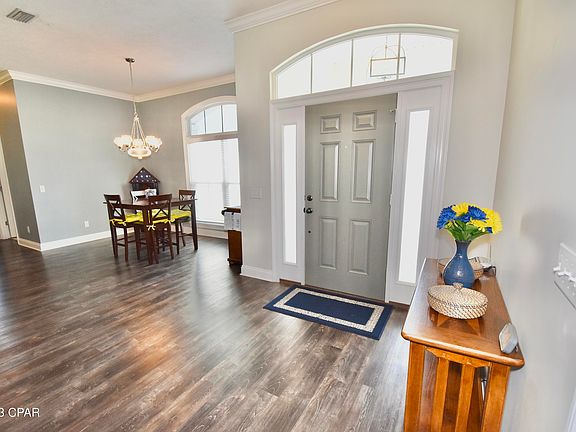 Back on the market due to financing. This beautiful 4 BR 2 BA home sits on a large lot, only minutes to Tyndall AFB with beaches, shopping, restaurants, boat launches, and less than 30 minutes to Mexico Beach! The home offers 2006 sqft with a great split floor plan and open concept. Crown molding in living room, dining, kitchen, and hallway. The kitchen features custom two-tone cabinets, quartz counter tops, stainless steel appliances, a large island with undermount sink, a breakfast area, and French doors leading to the screened-in back patio. The living room and dining area are very spacious making this open floor plan ideal for entertaining. The Master bedroom has a tray ceiling and an oversized en-suite with a gorgeous tiled walk-in shower, soaker tub, dual vanity, separate water closet, and a nice size walk in closet. There are 2 bedrooms and a full bathroom on one side of the home and a bonus room on the other side, next to the Master bedroom. The fourth bedroom is on the second floor. The large backyard includes a 12 ' x 10' storage building and is enclosed by a wooden privacy fence, providing safety and security for your children and pets. It has plenty of space to store your boat, RV, and other toys. No HOA and this home is not in a flood zone. Call for your private tour today. Measurements approx; verify if important.