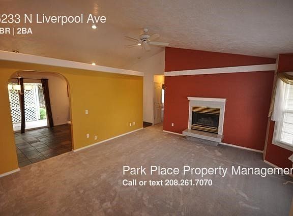 SCHEDULE A SHOWING ONLINE AT: showmojo.com/lh/a198cf805b Terrific single level, 3 bed/2 bath in Northwest Boise with numerous upgrades throughout. Vaulted ceiling in living room, dining room & kitchen, slate floor in dining/kitchen, covered patio, and large, private backyard. Split bedroom floor plan with large master suite. Quiet community in a clean and well kept subdivision. Close to all the amenities we like about Boise! For questions, please call (208) 377-3227. *This information is deemed reliable but not guaranteed. Renter is to verify all information (photos similar). Security Deposit: 1195 Parking: 2 Car Garage Lease Length: 12 month Subdivision: Coventry Manor Nearest Cross Street: State St/Gary Ln Square Footage: 1400 Virtual Tour: Date Property Available for Viewing: 2016/9/28 House Number: 5233 Bathroom: 2 Bedrooms: 3 Pets: Size Limited 25lbs (additional deposit may be required) Utilities Included: none Price Specials: none Balcony Deck Or Patio Boise Fridge Not Included Gas Fireplace High Vaulted Ceiling Laundry Area Inside