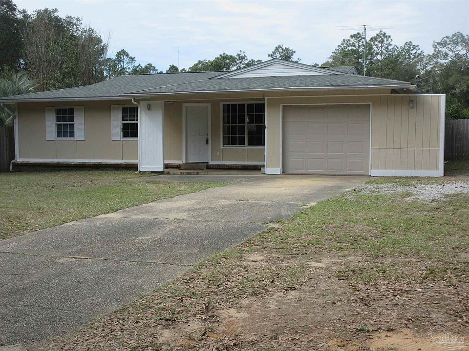 $214,000 As Is Appraisal from Jan 2025 *** Expensive Items Already completed: New: Roof, Central Heat & Air, Hot Water Heater, Garage Door & Opener, Termite Bond & ALL Wood Rot repaired & painted. Damaged Interior doors replaced. All it needs is Painting & 2 cracked window panes. ** Enter the home from the Covered Front Porch into the Great Room with a Double Window & views of a Large Dining Area & Kitchen. The kitchen features 22 solid wood cabinets & 6 drawers. Window over the sink allows you views of the Private back yard. The Florida Room is perfect for an office, craft room or home schooling area. All 3 Bedrooms have larger closets, ceiling fans. Master Bath has a window for natural light, Large Tile shower & a Medicine cabinet.. Hall Bath has a tile tub/shower. Storage isn't a problem with the Hall Closets, Huge Inside Laundry Room & Garage with its new opener & garage door. Private yard is crossed fenced so you can have a large dog run, gardedn area or play area. This Quiet Area near Parks, Boat Docks, Walking Trails, Community Center & Great Schools is perfect for a family or retiring couple.. All this just Minutes to Shops, Restaurants & Pensacola Makes this a must see home.
