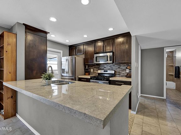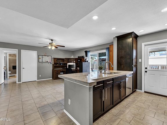 Beautiful single level home with 4 bedrooms, 2 bath, 2 car garage, RV gate, sparkling pool and bonus no HOA. Open kitchen with custom cabinets, glass tile back splash, granite counters and stainless steel appliances. Master bedroom has tons of closet space and a separate vanity/makeup area. Both bathrooms have beautiful custom tile work in shower surrounds, granite counters.AC was installed in 2020 with an additional 16'' of insulation for excellent energy efficiency, New roof 2024, New hot water heater 2023, new dishwasher 2024, new pool plaster(2016) plumbing in 2024. Tile in all major traffic areas and new carpet installed in 2021 and exterior of home painted in 2023.Storage shed in back and large RV gate with side parking. Bonus a lime tree out front!