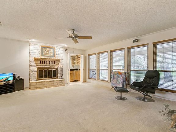 Well-maintained home situated with views of the golf course's 15th green and 16th tee box. The living area includes a wood burning fireplace as well as a wet bar. The roof, HVAC, and 2 water heaters are all recently replaced and the exterior was recently painted. The windows are new tip-out, sliding windows. The guttering is also new with 500 micron screens. The oversized garage has great built in cabinets, plywood floored attic, and a shop area. The lot boasts mature pecan trees and wonderful landscaping. The back patios are a great place to sit outside and relax at any time of the day. The house is priced to sell, well below the comps! This gives buyers a chance to make any cosmetic changes they may require!