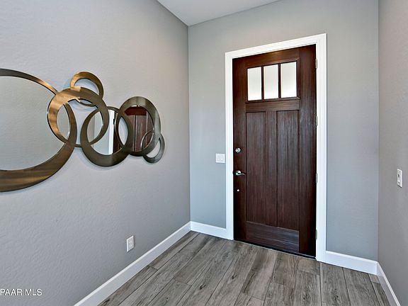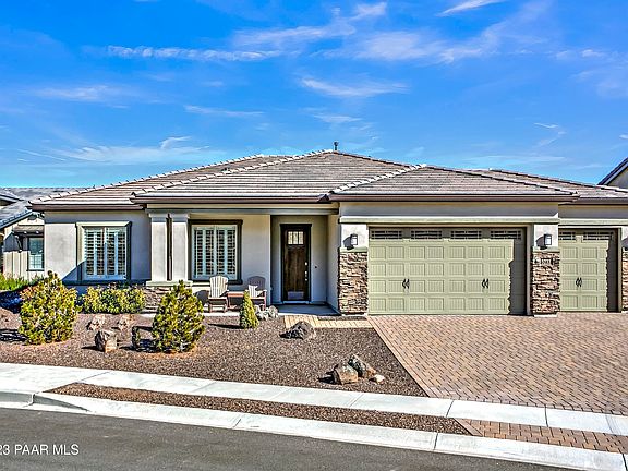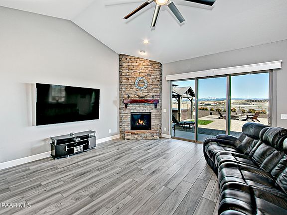 Nothing to do but move in and enjoy the long range views of the Dells, Mingus Mountains and beyond! Gaze at the stars as you entertain around the back yard fire pit and spa. Spacious back yard with generous dog run.Upgraded, light and bright interior with an open floor plan, tile floors (carpet in 2 bedrooms), gas fireplace with blower and a modern kitchen. Enjoy views of the Dells from one of two windows in the dining area. Guests will appreciate the en-suite bath in the second bedroom. Third bedroom has a stylish murphy bed with storage (no closet). The 3-car garage boasts storage cabinets and a utility sink for all of your projects. Neighborhood amenities include a dog park, play area and pickle ball courts.