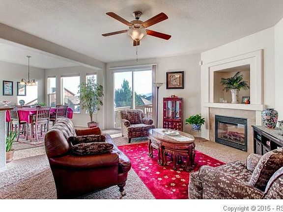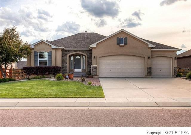 Gardener's Delight - this gorgeous Stucco Rancher is surrounded by beautiful landscaping - from the carpet of grass to the flowering trees, shrubs and perennials. Professionally designed and meticulously maintained you will delight in sitting on the stamped concrete patio in the evening or having morning coffee on the upper deck with views of the mountains. Inside, "Mrs. Clean" lives here - you won't find a cleaner home where everything has been maintained to perfection! True Main Level Living, Entertainers Delight with Gourmet Kitchen that opens up to the Great Room and includes all Stainless Appliances including a brand new, top of the line convection oven and dishwasher. A large breakfast bar is great as a serving space for buffets or pull up your stool for a chat with the chef in the kitchen. Tons of cabinetry give you room for everything plus there is a large pantry. The Great Room has a gas fireplace, large Dining Space and walks out to a large deck. A Main Level Master Retreat with 5-Piece Bath and Enormous Walk-in Closet walks out to the deck also. A spacious office with French doors and adjoining Guest Bath plus a large laundry room plumbed for a sink complete the Main Level. The Lower Level features a huge Family Room with space for a theatre room and game area plus 3 oversized bedrooms (all with tons of closet space), garden level windows, another guest bath with double vanities and a designated storage room. A 3-Car Garage has a side entry door that leads to the fenced back yard. Upgrades include Central Air, Custom Window Coverings Throughout, Plenty of Storage. Located in a Quiet and Well-kept Neighborhood this home provides easy access to Military Installations, Pikes Peak Community College, Shopping and Restaurants. Don't Miss this Opportunity!