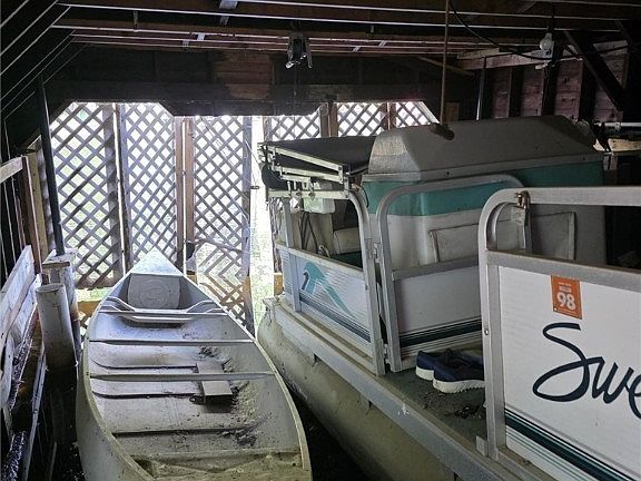 TURN KEY SEASONAL COTTAGE ON LILY POND part of Brantingham Lake being sold "AS-IS". Comes partially furnished with Pontoon boat and Canoe. Cottage has an enclosed porch with windows all across the front for beautiful views of the Lake. Enjoy sunsets out on the concrete deck that has electricity. Reinforced boat house with lift, upstairs in the boat has spacious area to house more guests, with sink and stove, and bar. This is a two bedroom one bath cottage has a spacious living area for you to enjoy the peace fullness of the lake. Enjoy the cool summer nights with the fireplace in the living room. Seller is Looking at all offers July 26 2025 at 5pm.