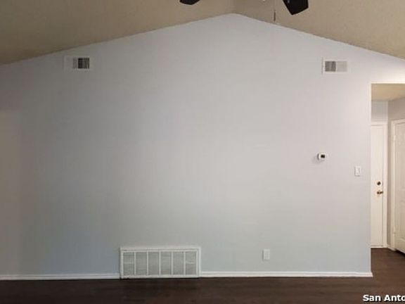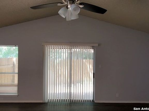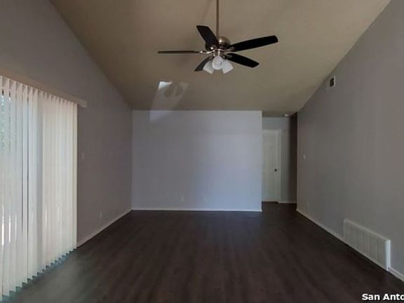 Welcome to this charming single-story duplex featuring 2 bedrooms and 2 full bathrooms. Experience the spaciousness of high ceilings in the main living area, creating an open and airy ambiance. The home boasts luxury vinyl flooring throughout, eliminating the need for carpet. The kitchen is fully equipped with a refrigerator, dishwasher, and stove, ready for your culinary adventures. The primary bedroom includes a walk-in closet and an en-suite bathroom for added convenience. Step outside to a large backyard, perfect for your personal touch. With easy access to Lackland AFB, Alamo Ranch, Hwy 410, and the 151 business corridor, this home is ideally located for all your needs.