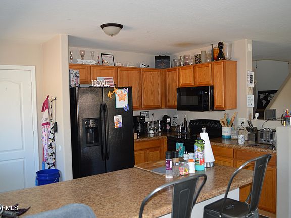 Beautiful, corner lot, 4 bedroom home with an extra large loft in the desirable Buckeye location with two gorgeous greenbelts surrounding the property. This lovely home boasts a full bathroom and 1 bedroom downstairs with a great room, eat in kitchen and walk in pantry. Upgrades include: new kitchen faucet, new fans, binds added throughout home, newer A.C. unit, new carpet, new interior paint and large deck added off upstairs loft. This home also boats solar panels which are rolled into the mortgage, a sparkling pool, spa, electric fireplace, gazebo, large back patio, storage shed, garage cabinets and water softener. Child proof locks have been added to all windows per City of Buckeye rules. Refrigerator, washer and dryer all stay with the home. Shopping close by. New elementary school and Costco being built near by. Don't miss out on this gorgeous home perfect for entertaining.