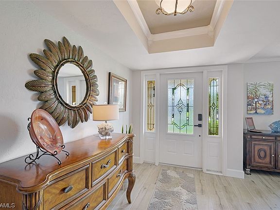 Introducing this stunning remodeled home located in Cape Coral, Florida! This exquisite property features 3 full bathrooms, 2 primary bedroom suites PLUS DEN with bath #3 access, plank tile flooring, a modern kitchen with all new cabinets, wall oven and breakfast bar. With its charming design and thoughtful renovations, this home is perfect for those seeking a luxurious and comfortable lifestyle. The pool, located on the south western rear exposure of the home, has been beautifully resurfaced and re-tiled, providing a serene oasis for relaxation and entertainment. Additionally, this home features a 2018 roof and a 2020 AC, ensuring that it is move-in ready and equipped with modern amenities. Don't miss out on the opportunity to own this incredible home with its own dock and boat lift, allowing for quick and convenient sailboat access to the Gulf of Mexico with no bridges or locks. Start living your dream coastal lifestyle today!