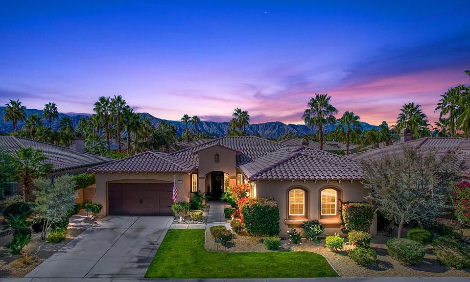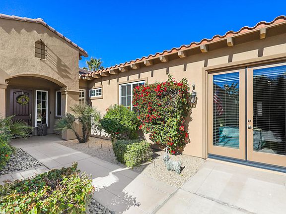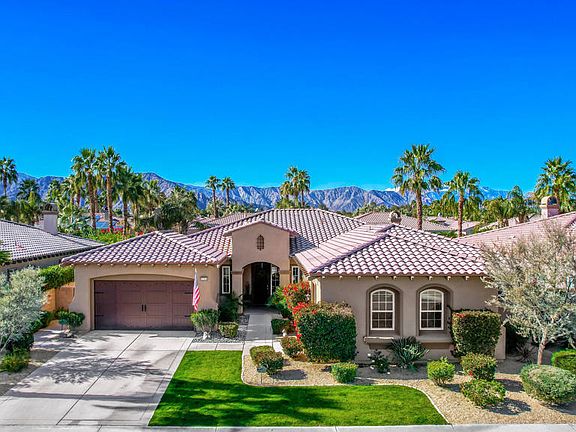 This Incredible Rancho Santana, 5 BEDROOM, 4.5 Bath, plus a private office (could be 6 Beds) Pool home with Mountain Views is magnificent. Custom, full wall built-ins in the office. The Fabulous Gourmet eat in kitchen has a center island, granite slab counter tops, stainless steel appliances, double oven, walk in pantry and more! The quaint family room has a romantic fireplace & access to the pool area. The outdoor covered patio has lots of space and an automatic Retractable awning and misting system. The pebble tec pool and spa has a tanning shelf with room for your chair and umbrella! There's even a barbecue island and a putting green! In addition, there's an attached guest casita, another guest suite, and two bedrooms with a shared Jack and Jill Bath. The Large master suite has a Customized walk in closet, double sinks, separate tub and custom tiled shower, and access to the back yard. This home also has Coiffured ceilings, plush carpet in all bedrooms, custom 24'' tile set on the diagonal in the living areas, Custom tile in all showers, Custom window coverings, Dual zoned AC controls, an outdoor, professional, 2 tier misting system, and ceiling fans throughout. This private, gated Community has a park, playground, picnic benches, a walking trail & putting green. Located just across the street from the Empire polo fields where many events occur like Stagecoach and Coachella music festivals, Dog shows polo events & Art festivals. No short term rentals.30 day minimum