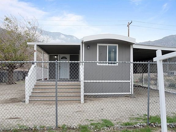 Welcome to this darling single wide manufactured home. The entry steps lead you to a cozy front porch which is the perfect setting to welcome guests. Step into serenity in this recently renovated, affordable two-bedroom, one-bathroom home in Cabazon, CA. Entertain guests in the spacious dining and entertainment room, showcasing the ideal setting for family dinners. The kitchen, a true highlight, boasts new countertops, cabinets, and stainless steel appliances. A double sink affords easy clean up. As you explore the hall, admire the newly tiled shower and flooring, updated cabinets and fixtures in the bathroom. Both bedrooms provide ample space and ample closet storage. Heat and Cool Air is provided via Mini Splits. The fenced yard is perfect for dogs or creating your outdoor oasis. Don’t miss the chance to own this meticulously upgraded home. The yard is fully fenced adding that sense of security. There is a covered patio which accommodates the water heater and washer/dryer hook ups. This area could store a smaller automobile/toys/patio area. The yard area has shade tree which is ideal for summer fun and holiday gatherings and parties. Additional improvements are freshly painted interior/exterior along with new windows. This starter home won’t stay on the market for long! Cabazon, CA, is known for its iconic Cabazon Dinosaurs, large dinosaur sculptures that have become a popular roadside attraction. Additionally, it’s home to the Desert Hills Premium Outlets, a renowned shopping destination offering high-end brands at discounted prices. The area’s proximity to the Morongo Casino Resort & Spa also makes it a notable entertainment destination. Cabazon is situated in the scenic Coachella Valley, providing a gateway to outdoor activities and desert landscapes. The proximity to Palm Springs Dining, Shopping and airport are just a few miles east off the 10 Freeway.