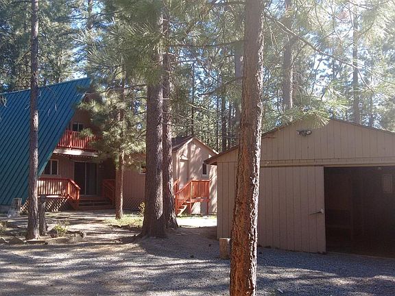 3 Bdrm, 2 Bath Chalet in Ponderosa Pines. 2 bdrms down; 1 bdrm up. Peaceful setting on a wooded 1.32 acre lot. Extra large, detached utility/bonus room. Home has been remodeled including a new metal roof. New 1000 gal concrete septic tank installed in 2003. Central A/C & heat pump as well as a woodstove. Upstairs balcony & lower decks. Patio, concrete pad & wiring ready for hot tub, RV parking. Detached 1 car garage w/shop area. Close to rivers & lakes & very close to government lands.
