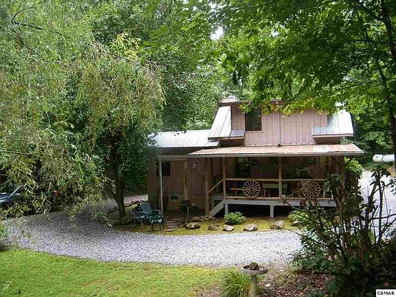 !Located in the scenic community of Rocky Flats (on the Cosby side of Sevier County) is this one of kind cottage with real mountain charm! Current owners have used it only as a second home but original owners did very well with it on vacation rental. Main level features greatroom w/ kitchen and fireplace, full bath, bedroom w/ closet and w/d access while upstairs is a cozy bedroom w/ half bath - covered front and back porches, pond stocked w/ fish, and unique touches throughout inc. dual showerheads for the romantics, log railings and stairs, pond dock, "bed" of flowers, and vintage furnishings i.e., school desks, armoires, wood stoves, quilts and antique art throughout. Beautiful wooded and shady setting offers complete privacy, established plantings and native shrubs, easy year around access and a true step back in time! This is not a cookie cutter cabin so if you want the ordinary, this probably is not for you! sq. footage per tax and previous appraisal and should be verified