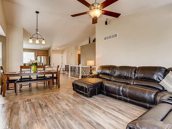 Pride of ownership throughout this home! This open and comfortable home has an updated kitchen open to the family room with vaulted ceilings. The kitchen has beautiful counters, with lots of counter space & stainless steel appliances. Lots of windows to allow light in. This ranch has 3 bedrooms and a finished basement with fantastic back yard and deck so you can enjoy the outdoors. Conveniently located in Skylake Ranch West. Excellent location - close to walking trails, parks, shopping. Walking distance to Anythink Library and the new Trail Winds Rec Center coming in 2019. Easy access to I-25 and I-76 about 20 minutes to downtown Denver and 25 min to Boulder. Only minutes from the new N line light rail planned for 2018! Come see what Skylake Ranch has to offer.