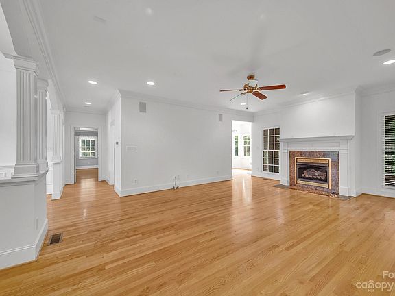 Lovely custom built home on 5 acres in a phenomenal, quiet & peaceful location. Approximately 2.5 miles to 485, close to shopping, dining & entertainment yet still secluded and tucked away in on a private 5 acre lot. Four golf courses within close proximity to neighborhood as well. This is a hidden gem that isn't often found! Inside the home you'll find an amazing split floor plan with the primary suite on one side and an additional two bedrooms and office on the other. Large kitchen with breakfast area, formal dining and family room. Features large screened in porch perfect for watching the nature that abounds in the backyard! Acreage features a large creek, Goose Creek, at the back. Circular driveway pulls to large two car garage, but also features a third garage perfect for mowers on back of home. More pictures to follow!