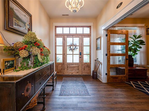 Ultra private sprawling ranch in Augusta on 13+ acres of wooded/open land offering more than 3,700 SQFT of luxury living, less than 30 minutes from Chesterfield! High ceilings & wood beams in the kitchen, including the great room, anchored by a floor-to-ceiling stone fireplace flanked by windows with stunning views. A Chef's kitchen has endless custom cabinets, granite counters, & black SS appliances, including double wall ovens & ice maker. Curl up by the fire in the hearth room. The master suite is large and beautifully put together with a walk-in closet & ensuite bathroom with soaking tub & oversized shower! The home is fitted with radiant in-floor heat, along with a private, accessible suite with roll-in shower. The property has trails cutting around it and the horse barn is a perfect place to keep your animals out of the weather. Come see this beautifully maintained home today! Some Accessible Features Additional Rooms: Sun Room