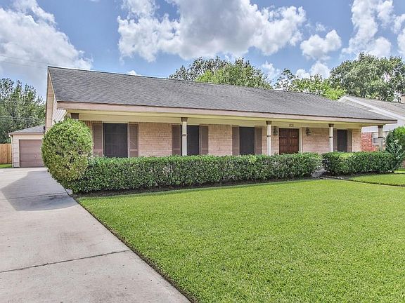 3/2/2D Never flooded!! Inviting columned front porch, double door entry. Neutral carpet in the formals. Den & hallway have been re floored with a hand scraped hardwood laminate. Skylight added to hallway for additional lighting. Tiled counters/back splash w/white kit appls & tiled floors, marble breakfast bar. Recent Stainless Steel refrigerator & recent washer/dryer included. Spacious den w/raised beamed ceiling, French door with access to covered patio, & backyard. Master bath has been totally redone with large shower + seamless glass door featuring rectified tile flooring, new cabinetry. Interior recently repainted. New ceiling fans & lights. Recently replaced hall bathroom cabinetry.