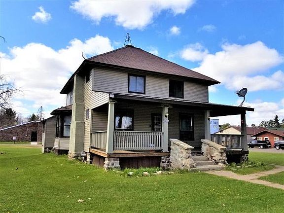 Mercer - Large In-Town location, 5 BR year round home with 2 car garage. This neat & clean home features a main level large living room with brick fireplace (currently capped) and large windows, large dining area with bay window & plenty of room for a huge dining table & all to comfortably sit and dine. Kitchen with solid wood cabinets, walk in pantry, SS refrig, stove, microwave, plus has dishwasher & disposal. Large 14 x 13 bedroom & Full bathroom w/jacuzzi tub & shower. The upper level has 4 large bedrooms. Hardwood floor throughout entire home; vinyl in kitchen & bathroom. Large unfinished basement with washer & dryer, natural gas forced air furnace, lots of storage area, bilco door to outside. Plus detached insulated 2 car heated garage, city sewer & water, on half acre lot, ATV-Snowmo access & walkin distance to Mercer Lake boat landing. Great recreation home! Plenty of room for you & your friends; store your ATV-snowmo, boat here, always ready for trails or lakes!