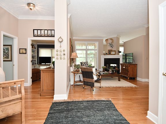 This 3 bd home with study is perfect. Hardwood floors throughout the common areas. The split bed floor plan offer convenience and privacy. The high ceilings, crown moldings and 6 panel doors are just some of the quality features of this home. The study features wall to wall floor to ceiling built-ins. The double sided fireplace ads drama and warmth to the great room and breakfast nook. The kitchen is light and airy with ceramic tile floors, stainless appliances, spacious pantry and lots of natural light. The large on-suite bath in the primary bedroom is bright and cheery, with natural light, double vanity, private stool closet, stand up shower and large soaking tub. Best of all is the large sunroom with panoramic views of the park like yard