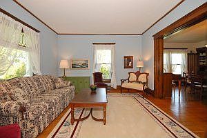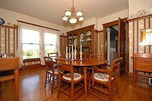 Classic farmhouse styling with huge wrap around front porch. This home has been lovingly restored using much of the original woodwork. Most walls have been sheetrocked, convenient attached garage was added and almost all new mechanicals, etc. Leaded glass windows, built-in hutch, and other beautiful details throughout.