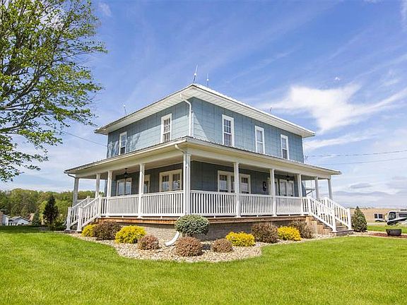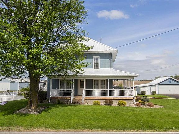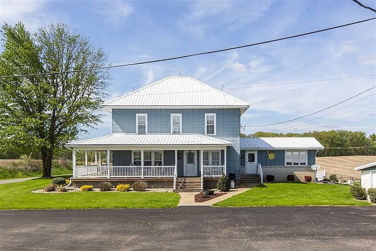 Beautiful, updated farm house! 5 acres of country living but just minutes from toll road access. Large living room next to a formal dining room. Large, updated kitchen with plenty of counter space and cabinets. Cozy breakfast nook just adjacent to the kitchen. Laundry area and 3 4 bathroom just off the kitchen. Enjoy the amazing views from the Sunroom with sliding glass doors on 3 sides, overlooking the deck with steps down to the in-ground pool. Second story has 3 large, carpeted bedrooms and a full bath. Landscaped yard with in-ground sprinkling system. Plenty of outbuildings and pole barns for storing all your toys or running a business. The opportunities are endless with this farm house and acreage! *New septic system, well, and radon mitigation system installed 2020* Schedule your showing today! *Building A is 2, 232 sq ft, Building B is 3, 960 sq ft, Building C is 3, 072 sq ft, Building D is 6, 160 and a corn crib is 864 s q. Outbuildings to be sold "as-is"