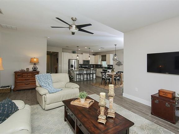 - Interior Features: Ceiling Fans(s), High Ceiling(s), Split Bedroom, Walk-In Closet(s), Window Treatments, Open Floorplan, Solid Wood Cabinets, Eating Space In Kitchen, Kitchen/Family Room Combo, Stone Counters