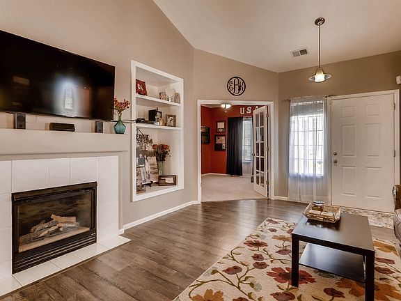 Move-in-ready 3 Bedroom 2 Bath Ranch Style Home located in the desirable Bluffs at Saddle Rock Ridge neighborhood. It has been updated with new high grade laminate flooring (3/30/17) in the living room, kitchen, and hallways. Stainless Steel kitchen appliances including a French Door Refrigerator and a gas range with double ovens. The freshly painted interior features 9' ceilings, a vaulted ceiling in the living room, a security system, a gas fireplace, ceiling fans in all bedrooms, and front loading washer and dryer. For outdoor recreation and entertaining there is a huge fenced yard and a 22'x22' deck as well as stamped concrete area!
