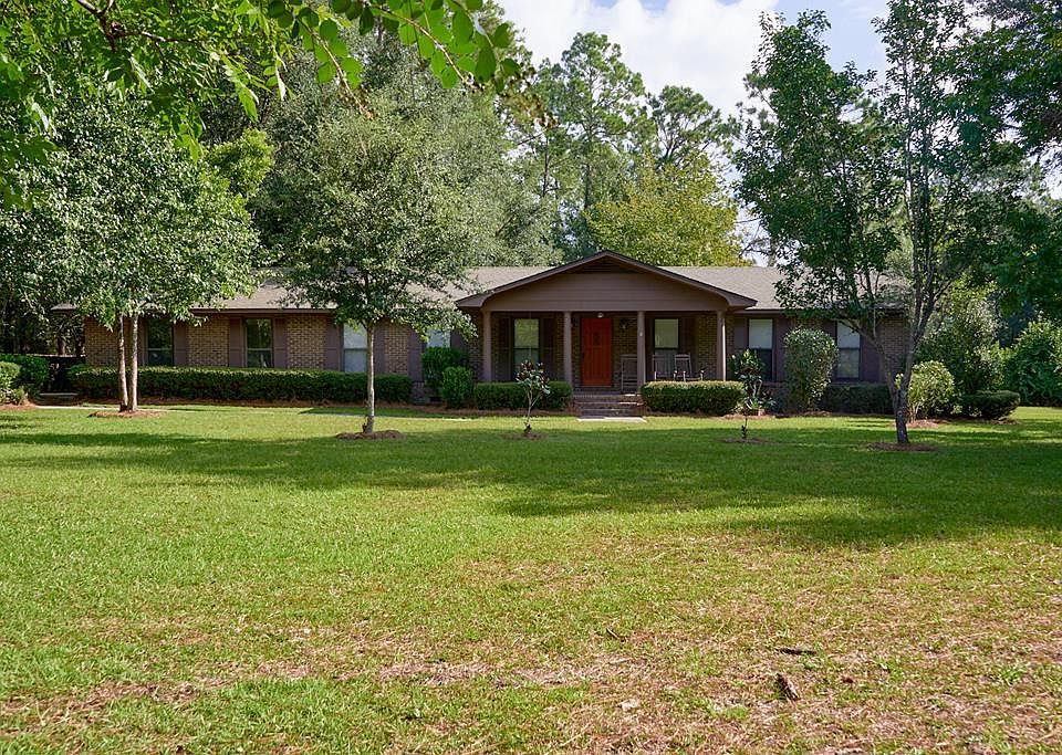 Highly desired Hahira location! This brick, ranch style home is situated on 2.85 acres. 1820 sf with 4 bedrooms, 2 baths, formal living room, dining room, and family room. There's a huge 15 x 36 sun room or game room that could easily be heated and cooled. This property has a lot to offer! A wired workshop with double doors and porches on front and back, a huge pole barn, dog kennels, approx. 30+ mature blueberry bushes, grapevines, and small pond. This property also borders a small creek.