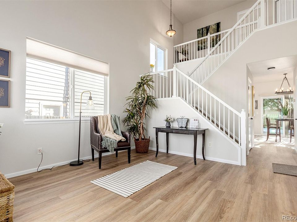 Welcome to 5236 Suffolk Ave. in Castle Rock. Discover your dream home in the heart of Founders Village! Built in 2000, this beautifully updated 3 bedroom, 2.5 bath property combines modern updates with the comfort and convenience you’ve been searching for. With 1,615 finished square feet above grade and an oversized 2-car garage with built-in workbench, storage and a refrigerator. This home is thoughtfully designed for effortless living. Find all-new LV plank flooring, fresh paint, stylish lighting and new window blinds throughout. The open and airy floor plan greets you with soaring ceilings in the living room, creating a bright and welcoming atmosphere. The kitchen is a chef’s delight, boasting granite countertops, plenty of cabinets with pullouts, a pantry, and brand-new stainless steel appliances. Check out the clever dry erase board on the side of the dishwasher! Adjacent is the cozy family room featuring a gas fireplace, built-in shelving, surround sound, and seamless access to the private backyard with brand new slider. The outdoor space offers a large Trex deck, perfect for entertaining, relaxing, or enjoying the Colorado sunshine. Upstairs, the primary suite serves as your personal retreat, complete with an ensuite bath and a walk-in closet. Two additional bedrooms share a full updated bath, and the convenience of an upstairs laundry. Comfort is guaranteed year-round with ceiling fans, central air, and a recently serviced and certified HVAC system as well as a 2022 Roof! Located just 4 miles from historic downtown Castle Rock, this home enjoys the perfect balance of suburban tranquility and city convenience. Founders Village offers incredible amenities with low HOA dues, including The Ridge House with pool, tennis and pickleball courts, parks, tons of walking trails, and beautifully maintained common areas. A stone throw away from grocery and conveniences. With its fresh updates, large Trex deck, and prime location, 5236 Suffolk Ave is calling YOUR name!!