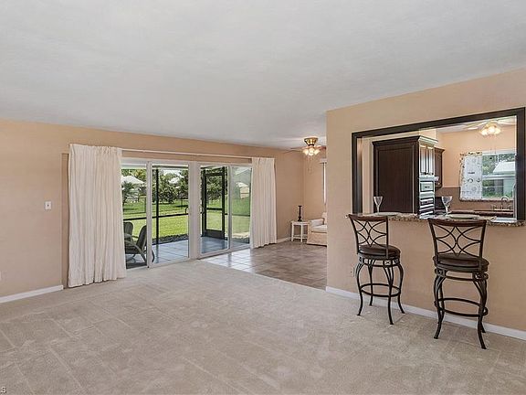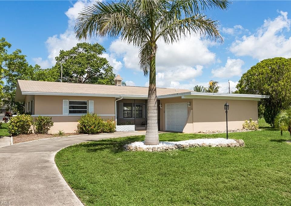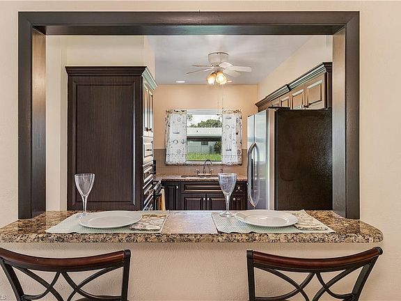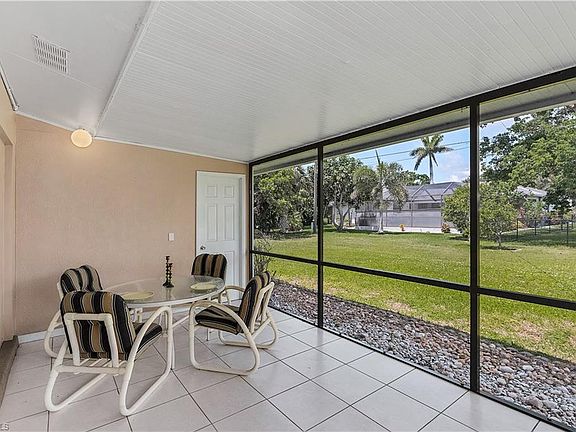 Location! Location! Location! This home is across from waterfront Homes and has quick access to YACHT CLUB beach, Cape Coral Bridge, Fort Myers, shopping, restaurants, grocery, and more.... REMODELED KITCHEN with STAINLESS APPLIANCES and GRANITE. Island style countertop seating. Grand four-panel sliders open up to a spacious: covered, screened and tiled lanai for outdoors living. Living room has custom lighted cabinetry. Separate dining area. Carpets recently cleaned. MAN CAVE/utility room has entry way from the main bathroom and also from the lanai area. Laundry room in residence with washer, dryer, storage, and utility tub. Both master bedroom and guest room have extra long closets. En-suite Master bathroom with shower. Big inviting backyard. Screened entryway with bench. Groomed landscaping with palm trees. Extended paved parking area off the driveway. Western exposure. Wind rated garage door NEW in 2015. City water/sewer in and ASSESSMENTS PAID! Easy access to Sanibel Island and Fort Myers Beach. AND..... Fort Myers International Airport is only about 17 miles away. Hurry! SELLER'S FLOOD INSURANCE PREMIUM ONLY $1,288....Call today.