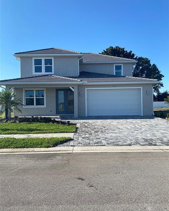 Under Construction. Beautiful five bedroom, four bath pool home located in the new subdivision Sand Hill Cove, off Honore just north of Clark Rd. This home features a master bedroom on the first floor with a flex room and an open concept living space. The kitchen has light and bright shaker cabinets, granite countertops and a large island. The first floor has porcelain tile throughout. The second floor features four bedrooms and two bathrooms with one of the bedrooms being a second master suite. All the bedrooms are bright and spacious with laminate wood look flooring. This home has impact windows and impact doors. The large lanai looks over a beautiful pool and hot tub. Sand Hill Cove subdivision has no CDDs and a low HOA of $150 per month. Photo is of a former completed home.