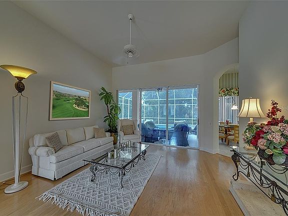 PARADISE FOUND! Bring the family as there is plenty of room for all in this custom Magenta plan. 3 spacious bedrooms, 2 baths, formal living/dining rooms, plus enlarged family room, opening to an extended lanai with heated pool and spa...oh and a sweet golf course view! You'll be sure to enjoy the sunrise on the patio as the community comes to life and the birds sing or a private spa happy hour in the evening! Wonderful natural lighting, 12' ceilings, large master bedroom and bath with double closets, true split plan, gas fireplace in family room, central vacuum and decorative kitchen cabinets to showcase your wares. Neutral paint, beautiful wood floors in formal living and dining, family room and kitchen are tiled, bedrooms are carpeted. Home has been gently and seasonally used, BRAND NEW TILE ROOF and new exterior paint, newer A/C, front load washer/dryer, water softener, hurricane roll down shutters on lanai, turnkey furniture package negotiable. Easy to show...don't delay! All recreational memberships optional. NO CDD FEES!